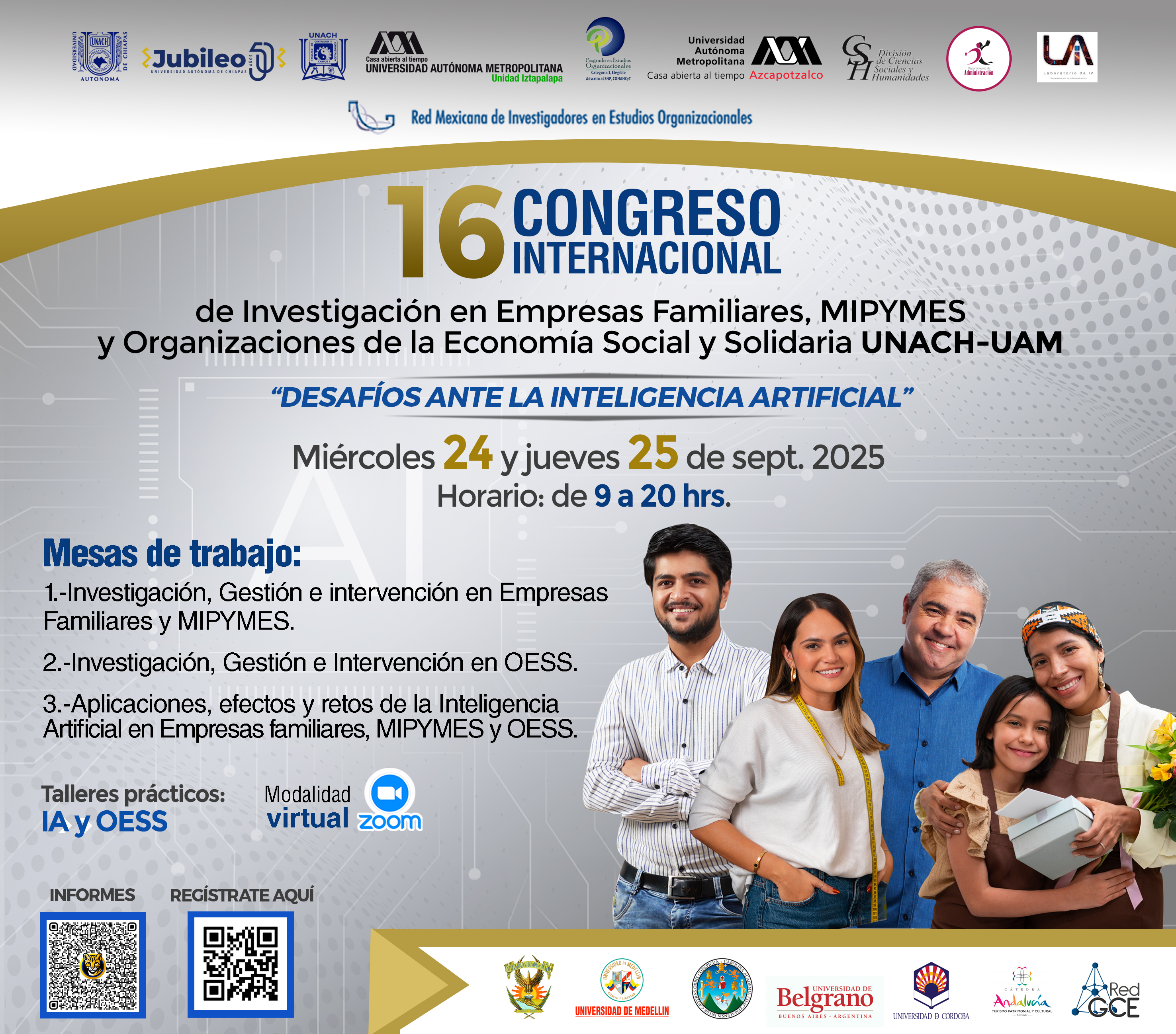 El pasado 23 y 24 de septiembre de 2025 dio inicio el 16° Congreso Internacional de Investigación en Empresas Familiares, MIPYMES y Organizaciones de la Economía Social y Solidaria UNACH-UAM, bajo el eje “Desafíos ante la Inteligencia Artificial”.